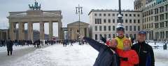 Gut gelaunt lässt es sich die vierköpfige Laufgruppe aus Münster nicht nehmen Berlin SightRunning auch im Schnee und bei Minusgraden zu erleben. "Wir kennen Berlin schon etwas von früheren Besuchen," - sagt Erich Hadler bei der Buchung - "aber eine Stadtführung im Laufschritt hört sich für uns Läufer interessant an und die wollen mal ausprobieren". Ein TV-Bericht über Mike's SightRunning brachte Freundin Elke Segert darauf an einer Tour zur Jahreswende teilzunehmen. Wie bei der Witterung zu erwarten, dauerte die Tour länger. Trotzdem - 50 Minuten länger wollte keiner glauben. Die Überraschung lässt sich leicht erklären: Beim SightRunning werden alle Sinne stimuliert und das Gefühl für Zeit und gelaufene Strecke geht komplett verloren - und das ist gut so! Aber kaum ist der Spaß vorbei, erwacht der Hunger fordernd und Erich fragt: "Mike, wo können wir jetzt schön essen gehen?". Nach 13 km haben sich die sympathischen Münsteraner ein gutes Essen wohl verdient.